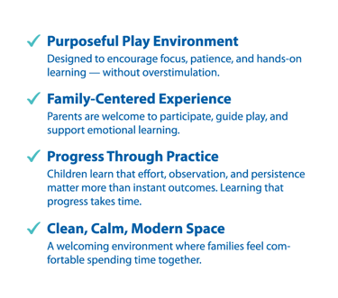 At Up One, children engage in hands-on play that builds coordination and emotional regulation in a calm, family-friendly environment.