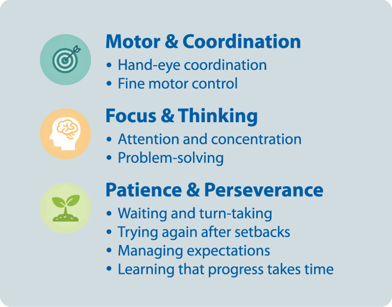 Through repeated play, children learn to observe, adjust, and try again — turning moments of success and disappointment into opportunities to build patience, perseverance, and confidence.